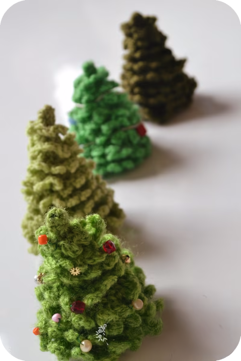 Picture this: twinkling lights, a cozy cup of cocoa, and the soft sound of yarn in my hands as I bring little festive trees to life.